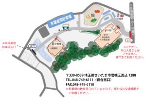駐車場がございませんので公共交通機関をご利用ください。岩槻駅より無料バスを運行します。