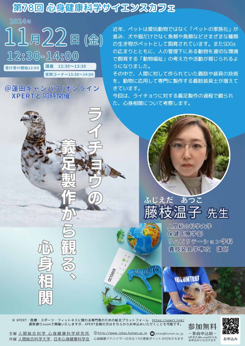 第78回 心身健康科学サイエンスカフェ「ライチョウの義足製作から観る、心身相関」