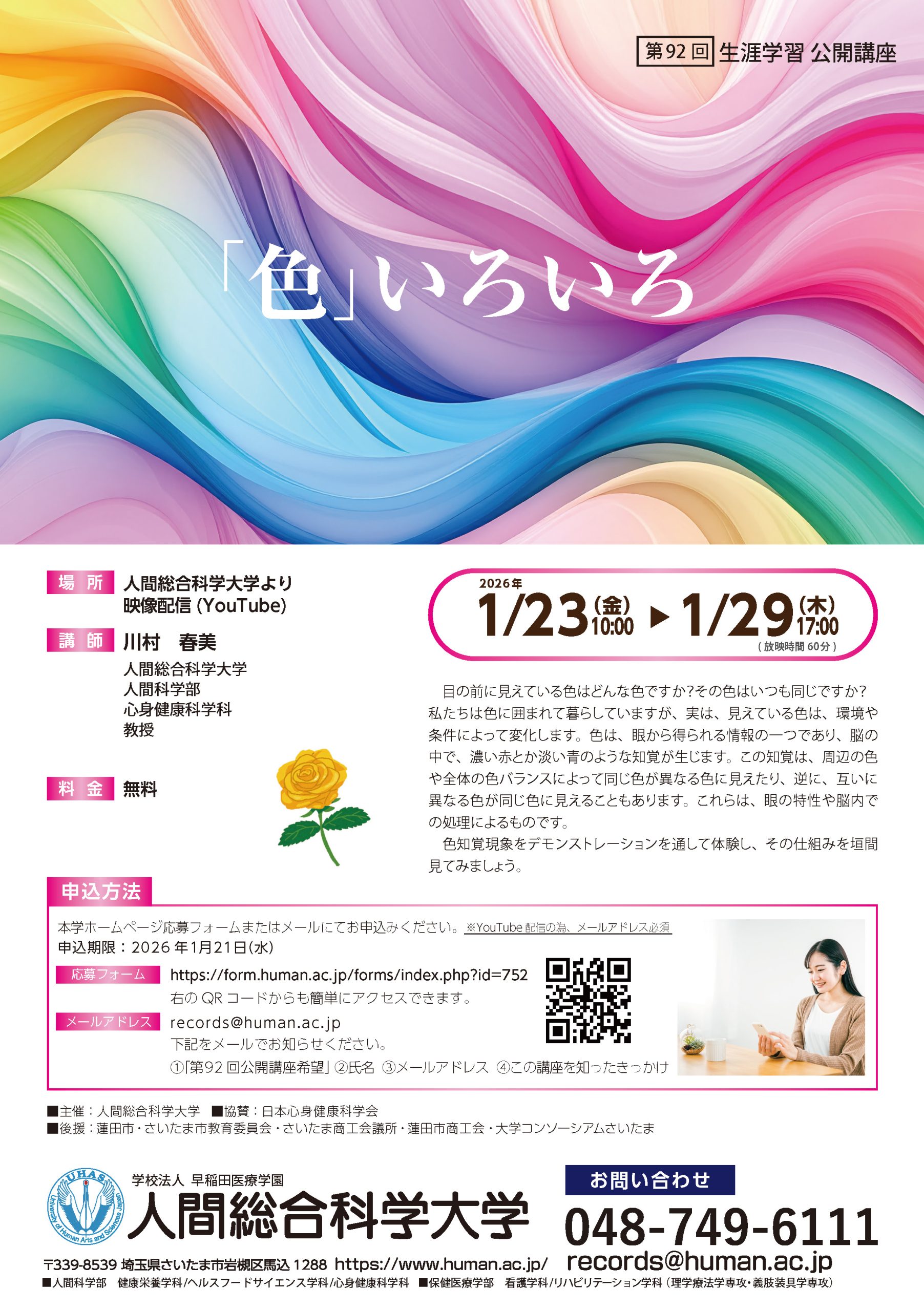 1月開催 第92回 生涯学習公開講座「『色』いろいろ」