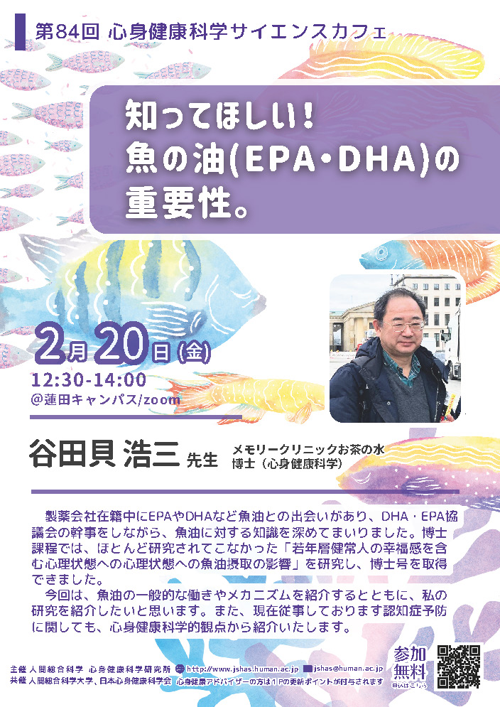第84回 心身健康科学サイエンスカフェ「知ってほしい!魚の油(EPA・DHA)の重要性。」